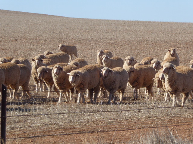 With the mine closed for so many years, you can't help wondering how the town survives as well as it does. Can tourism be enough? Turns out that it doesn't have to be: Burra calls itself the Merino Capital of the World. The logic is that Goyder's Line, roughly the 10-inch isohyet, is just north of town. The natural vegetation shifts from mallee (low-habit eucalypts) to saltbush. Crops vanish, and these guys move in.