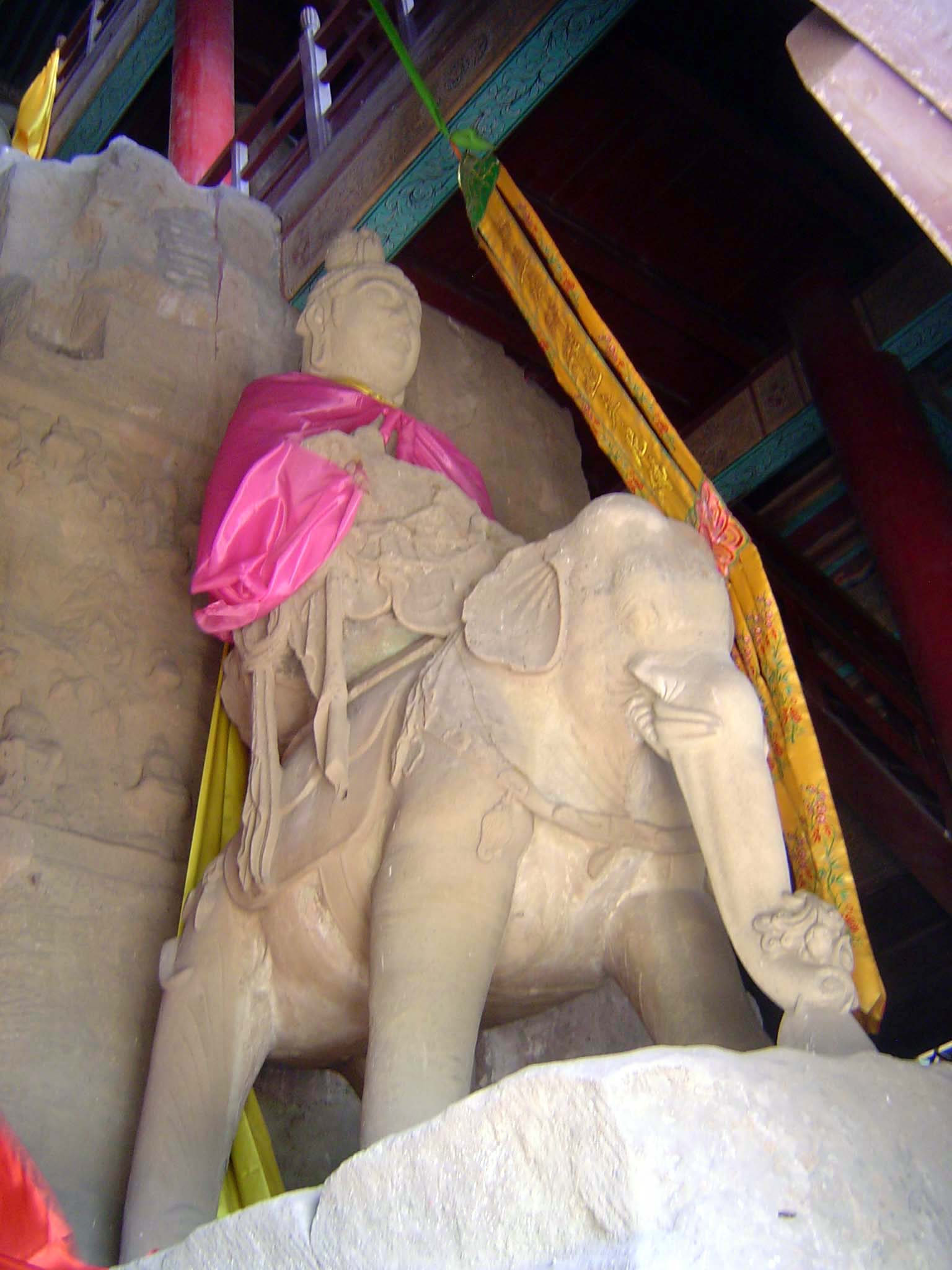 Samantabhadra, the Bodhisattva of Practice, rides an elephant.