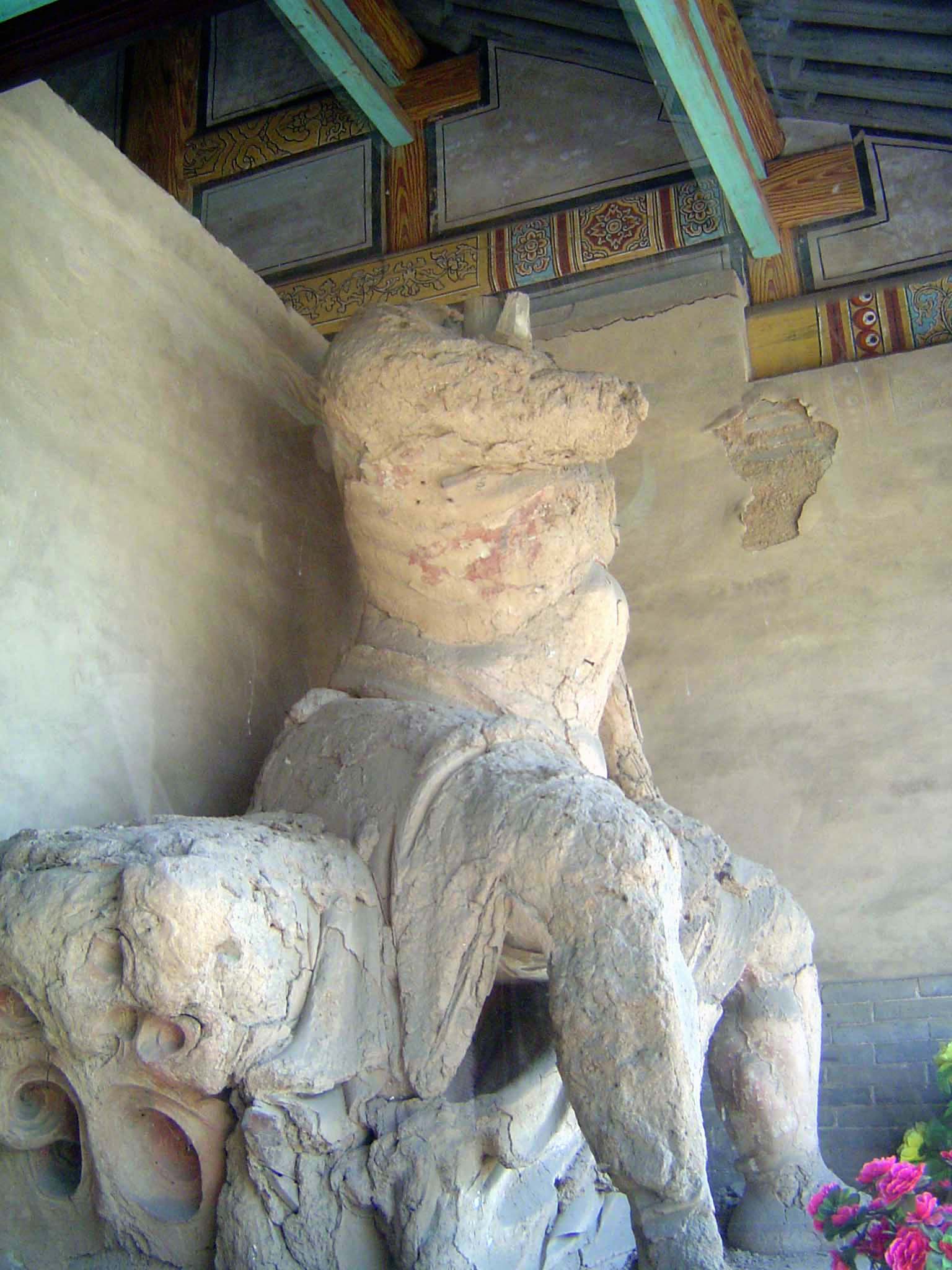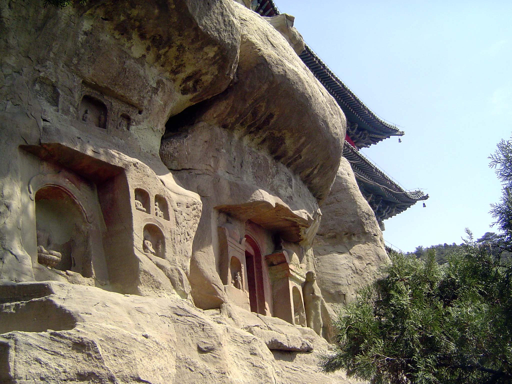 Right! Or wrong, as the case may be. The structure, the Manshan Pavilion, is a protective envelope added during the Ming Dynasty to the carvings, made much earlier, during the Tang. The figures here include a 33-foot Maitreya, the future Buddha. He sits behind Avalokiteshvara (=Guanyin), the Compassionate Buddha, around whose head are 10 subsidiary heads, suggesting that he sees everything.