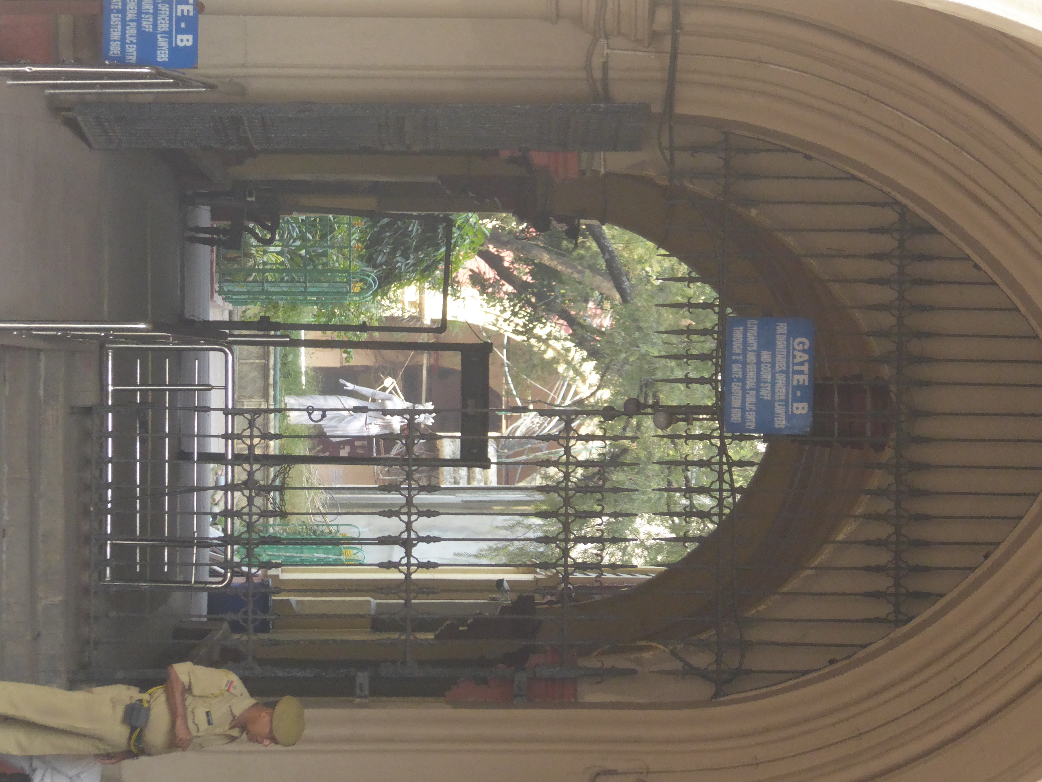 Welcome to the Futnani Chambers, named for the family that subleased the building from Hindustan Life Insurance, which in turn leased the building from the city government. The Futnanis in turn leased space to over a hundred businesses, including Bata's India heaquarters and several hotels. The master lease ran out after 99 years, and the city in 2011 took over management once again. Can you imagine? The main entrance, at the Hotel Raunak, used to lead to the Golden Slipper night club; the city recently demolished a balcony over the door lest it collapse. Inspectors found that crumbling stairs prevented access above the first floor. Will the building survive the underground construction scheduled here for another Metro link? Stay tuned.