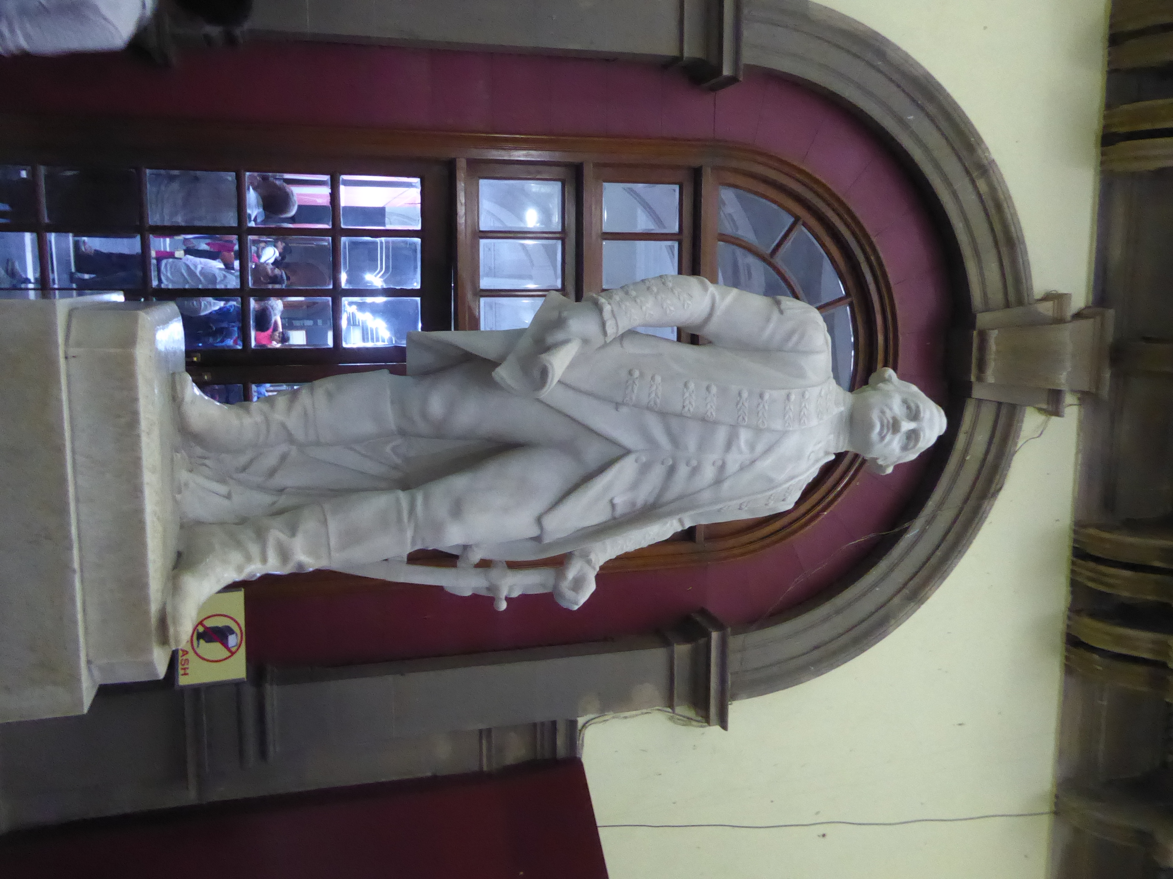 Now here's someone to reckon with—and with a much stronger tie to India. The statue is a replica of one in London. Yes, it's Robert Clive, he who said, "Mr. Chairman, at this moment I stand astonished at my own moderation!"