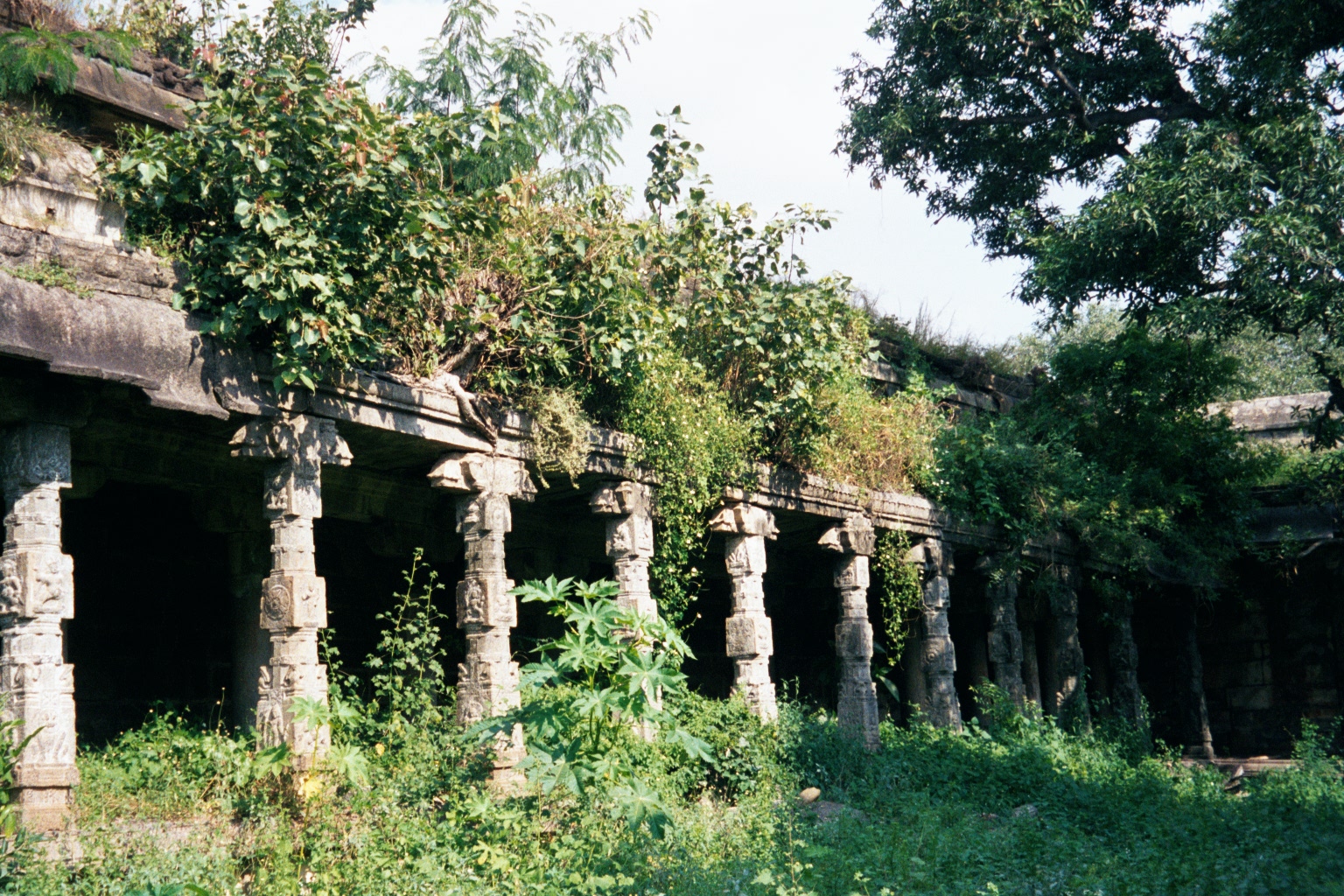 Kanchipuram (during the British period Conjeeveram) is etymologically the "golden city." It lies a couple of hour's west of Chennai and is a good-sized town, although from the main street you'd never guess the city has a couple of hundred thousand people. Modest as the town looks, it ranks as the Varanasi of South India and abounds with temples. Ekambareshvara Temple, shown here, is the biggest though not the oldest. It's a 16th to 17th century undertaking, far newer than the 8th Century Kailasanatha and Vaikuntha Perumal temples. Ironically, in view of its late date, Ekambareshvara is largely in ruin, which makes it especially interesting.