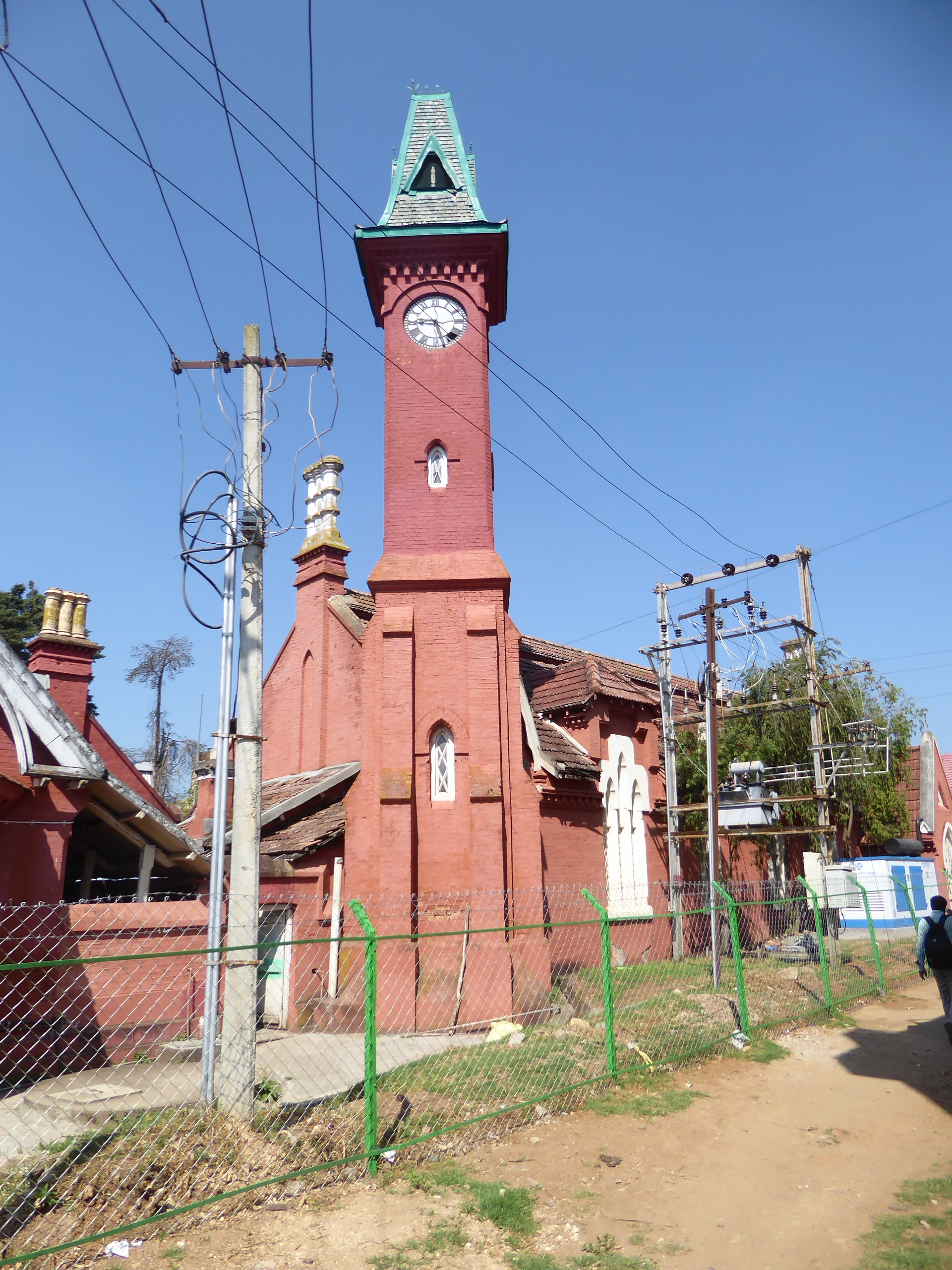 Ooty became the headquarters of the Nilgiris District, too. Here's the district courthouse. Wires and fencing pester the spindly clocktower.