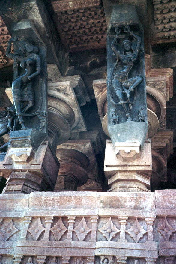 Attention was first drawn to Ramappa in 1922 by an archaeologist who called this temple and its neighbors "the brightest stars in the galaxy of medieval Deccan temples." This early attention led to some pretty crude emergency supports, like the two shown here.