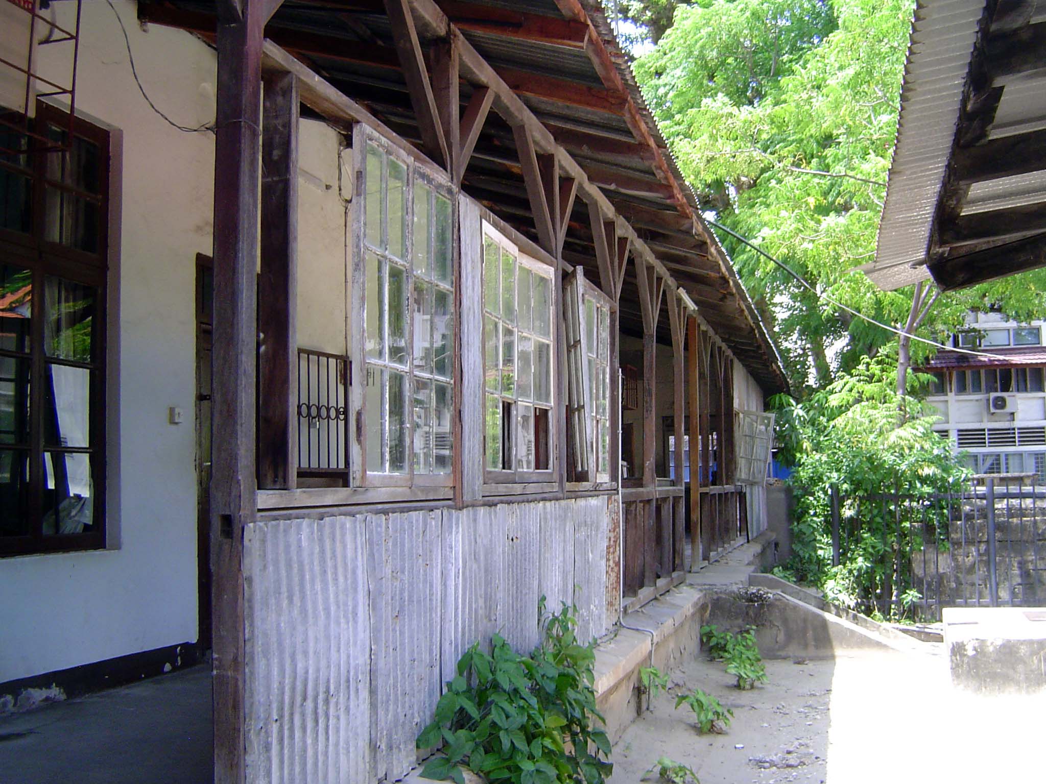 Behind the facades, many of these buildings are in rough shape. Let's take a look through that passage on the left. The building houses the Department of Lands and Surveys.