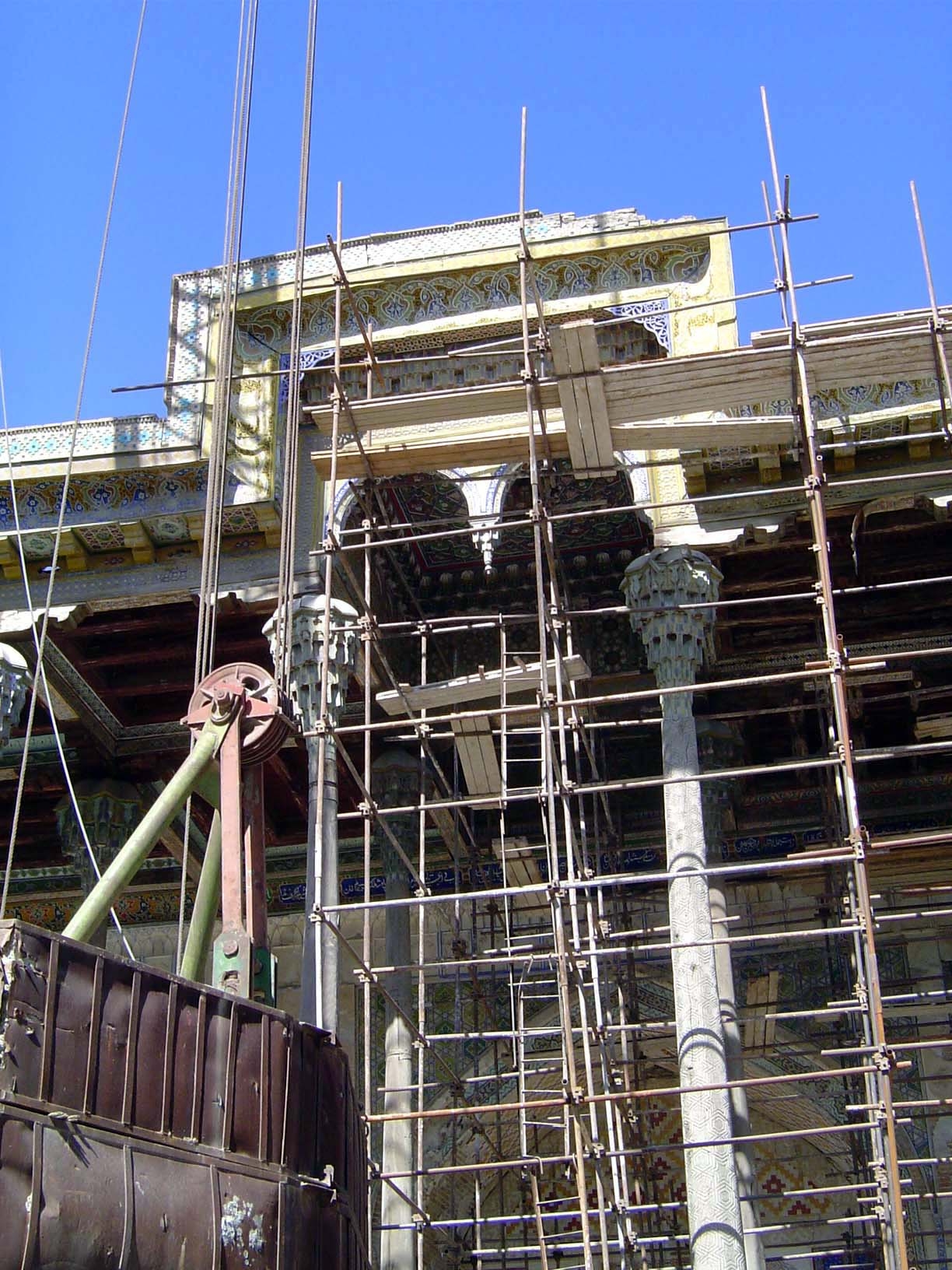 Opposite the entrance to the Ark there's a pool, and next to the pool is a mosque. The mosque is called simply the Bolo Hauz or "near the pool" mosque. It was built in 1712, but its highlight is the iwan added by Kurban Yuldashev in 1915-17.